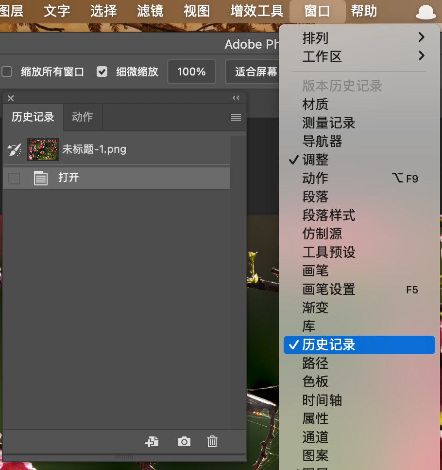 2.1 PS里的所有窗口都可以到顶部菜单的【窗口】中打开 #
