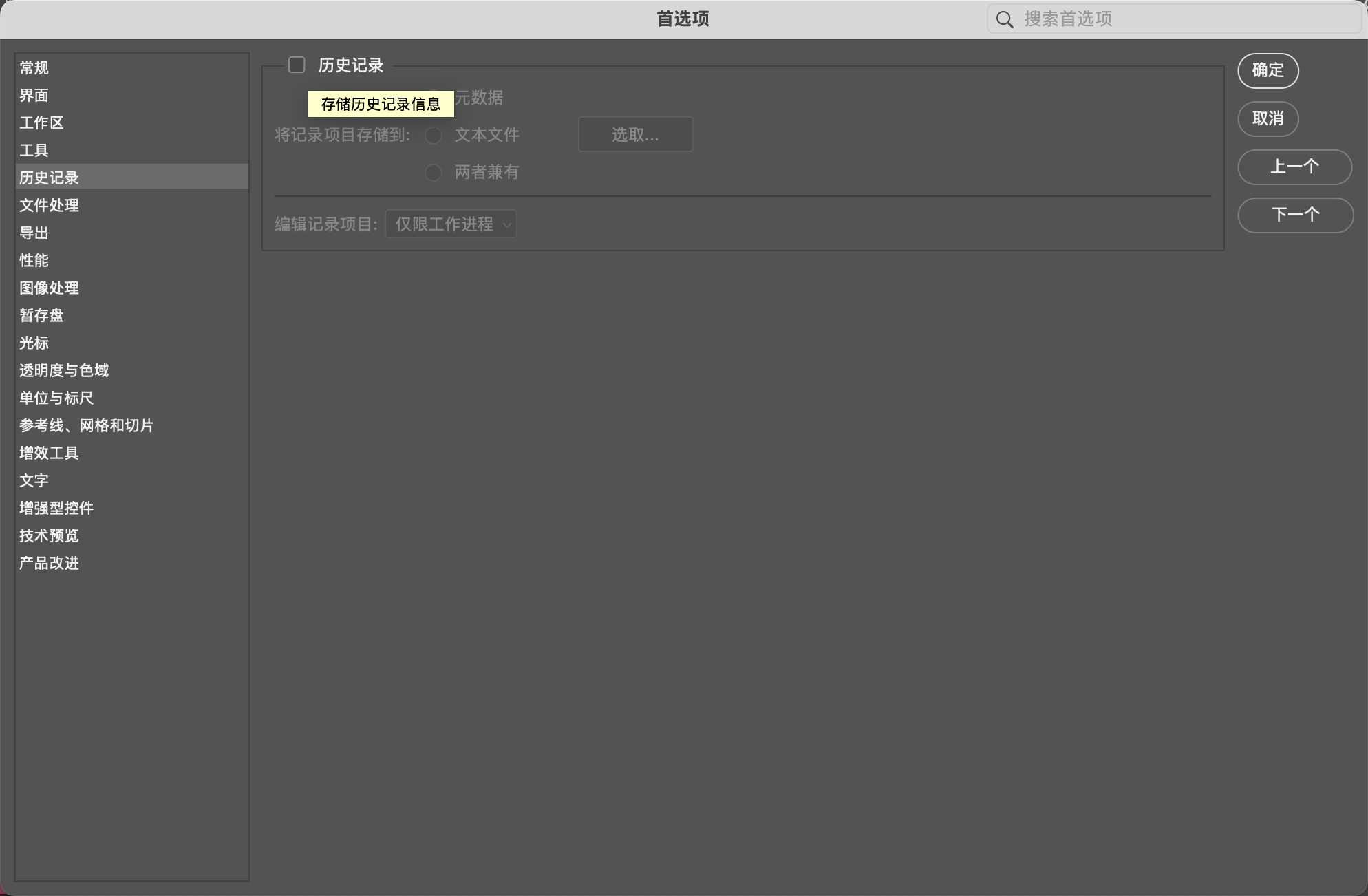 “首选项”里也有单独的“历史记录”选项