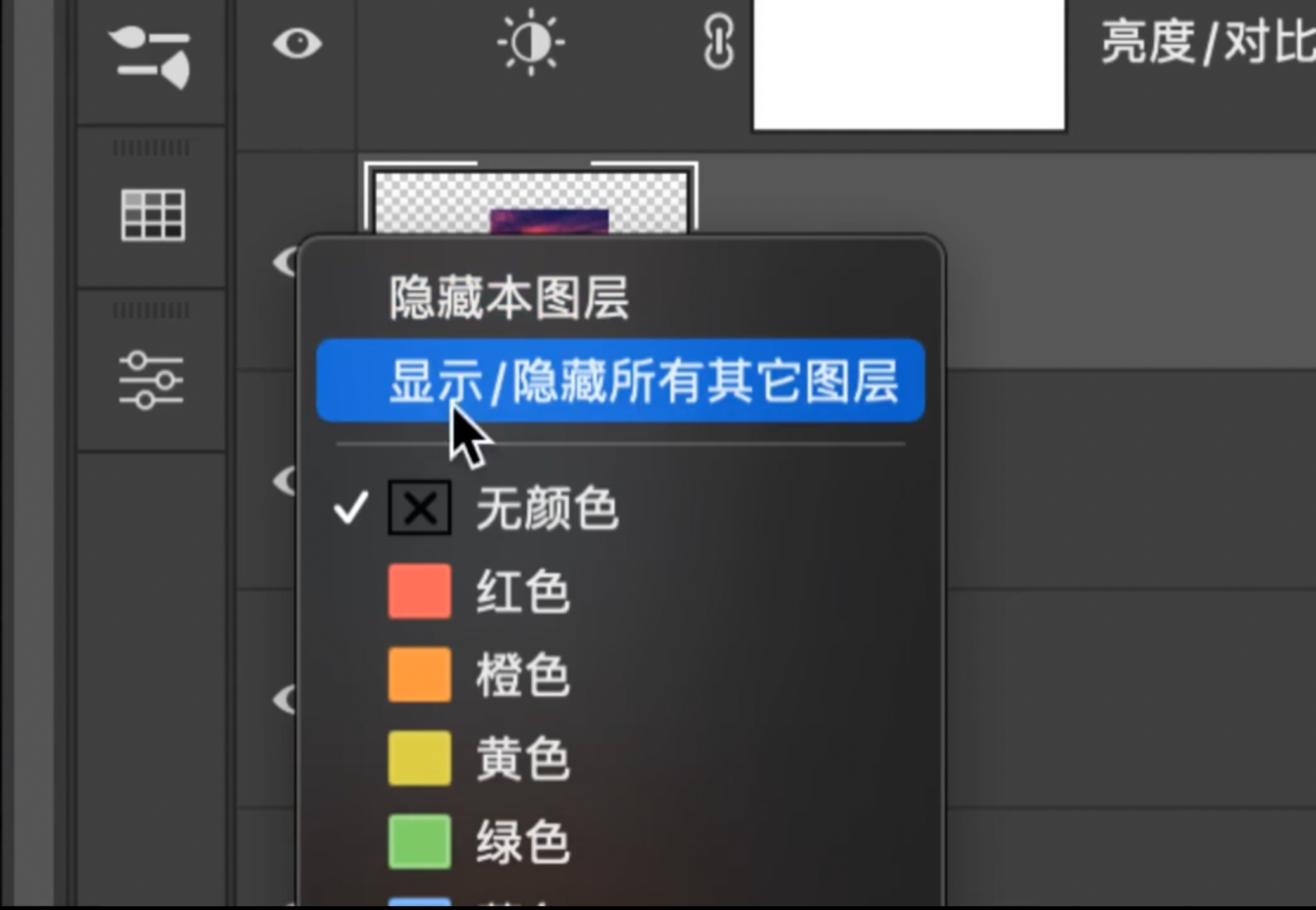 - 快捷键:Alt(Opt) + 左键点击蒙版缩略图单独显示蒙版