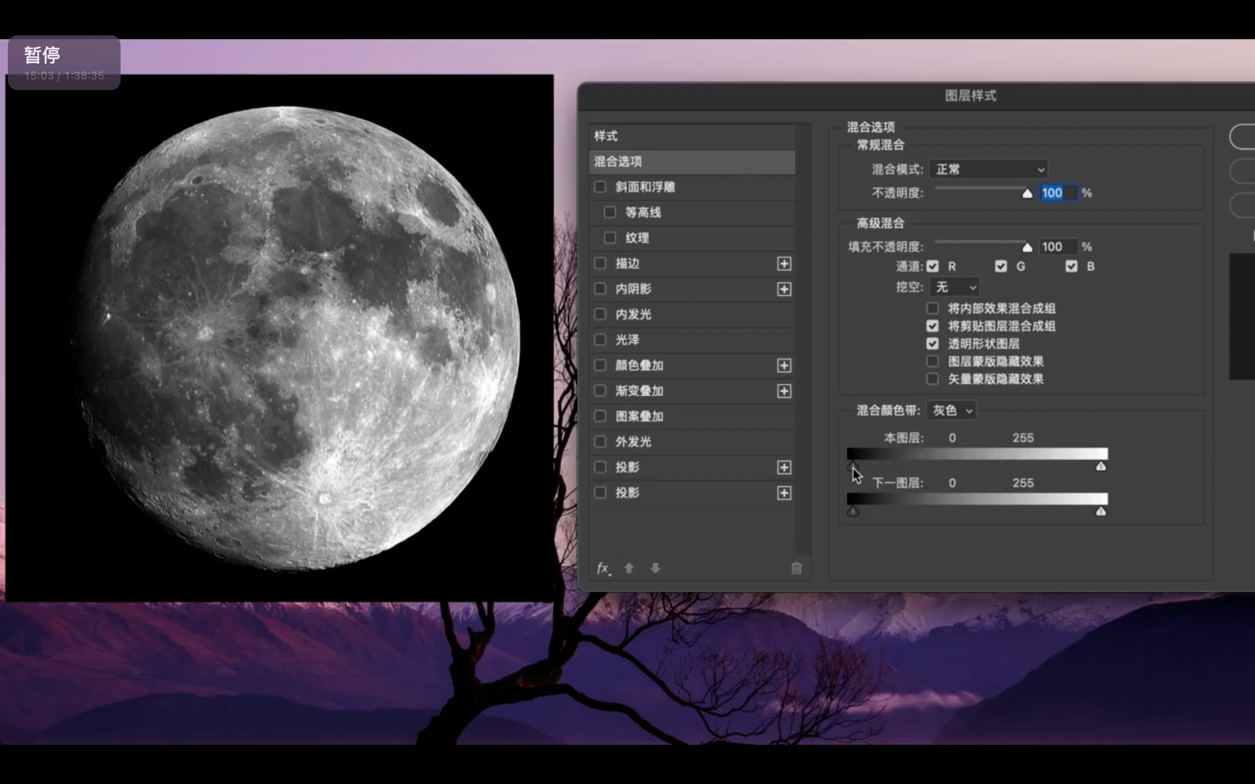 - 混合模式:用来保留树枝的纹理,只想修改边缘的色相,尽可能保留树枝的饱和度和明度