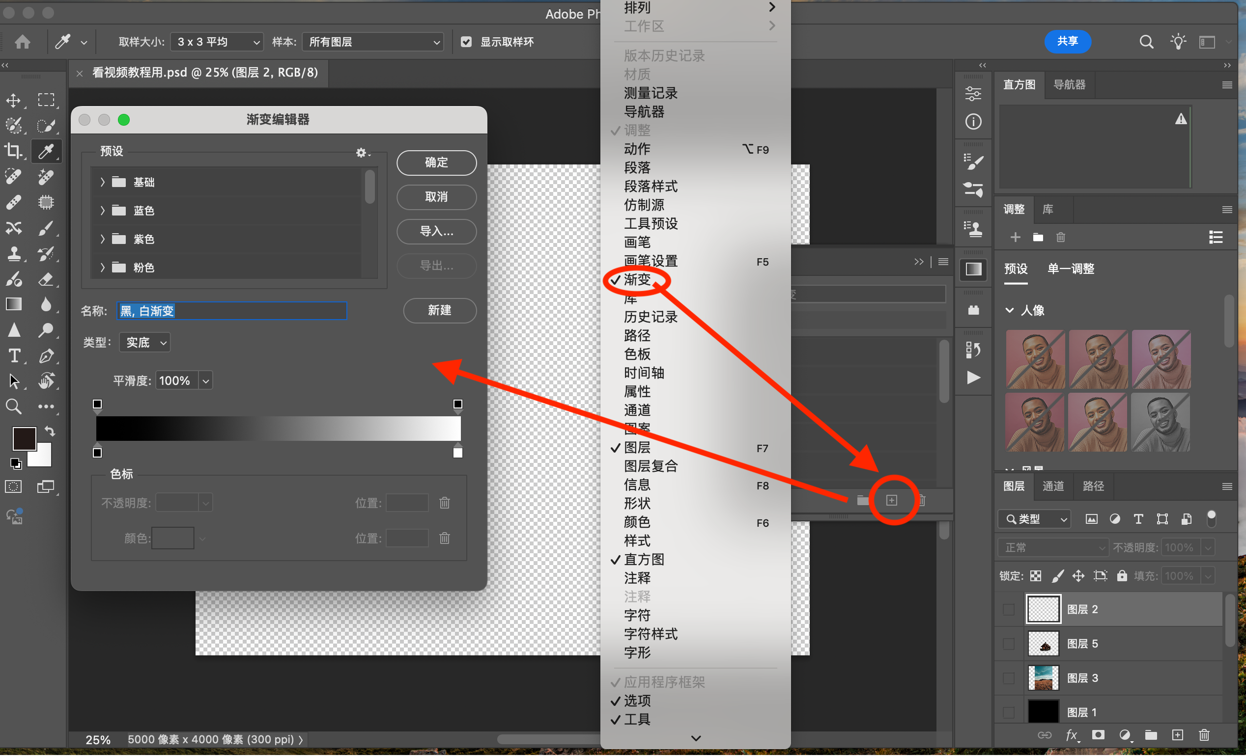 例如:图层、直方图等等