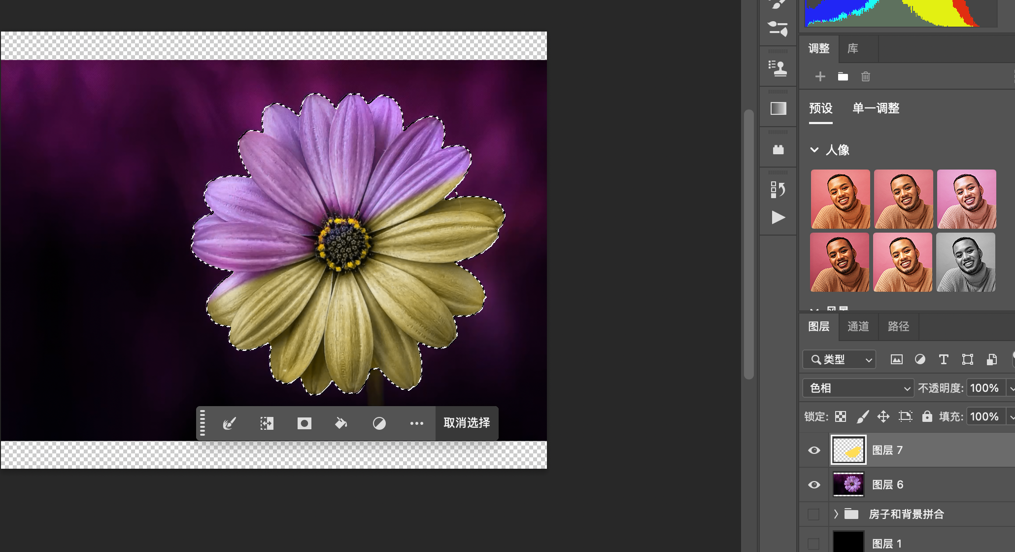 扣除来的图不完美,边缘带有杂色,可以用【涂抹工具】在蒙版上涂,从而涂抹掉杂色