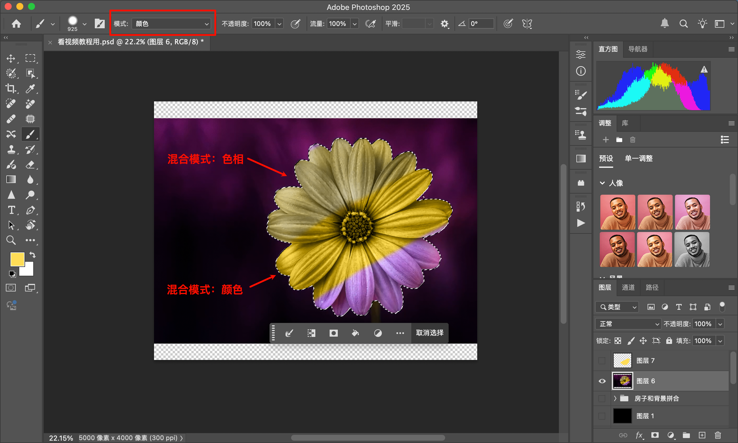 - 按照最终效果为准,哪个效果好就用哪个混合模式(色相、颜色、饱和度、明度)