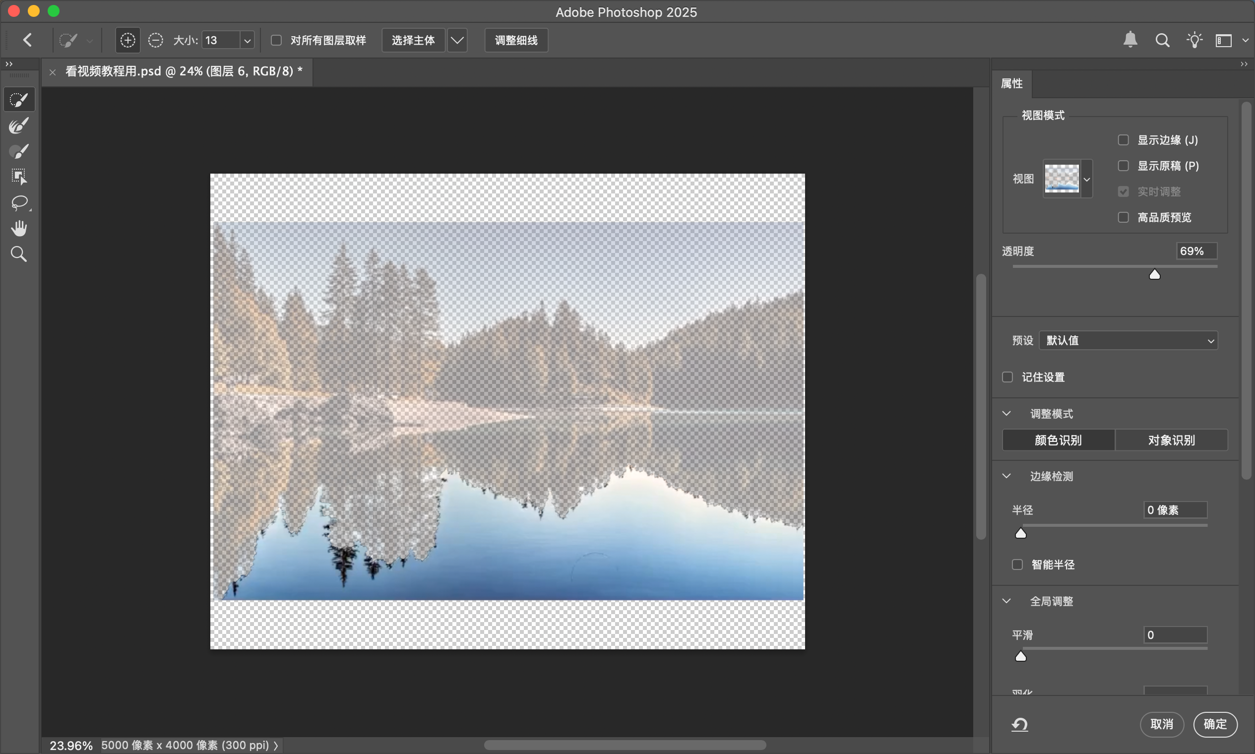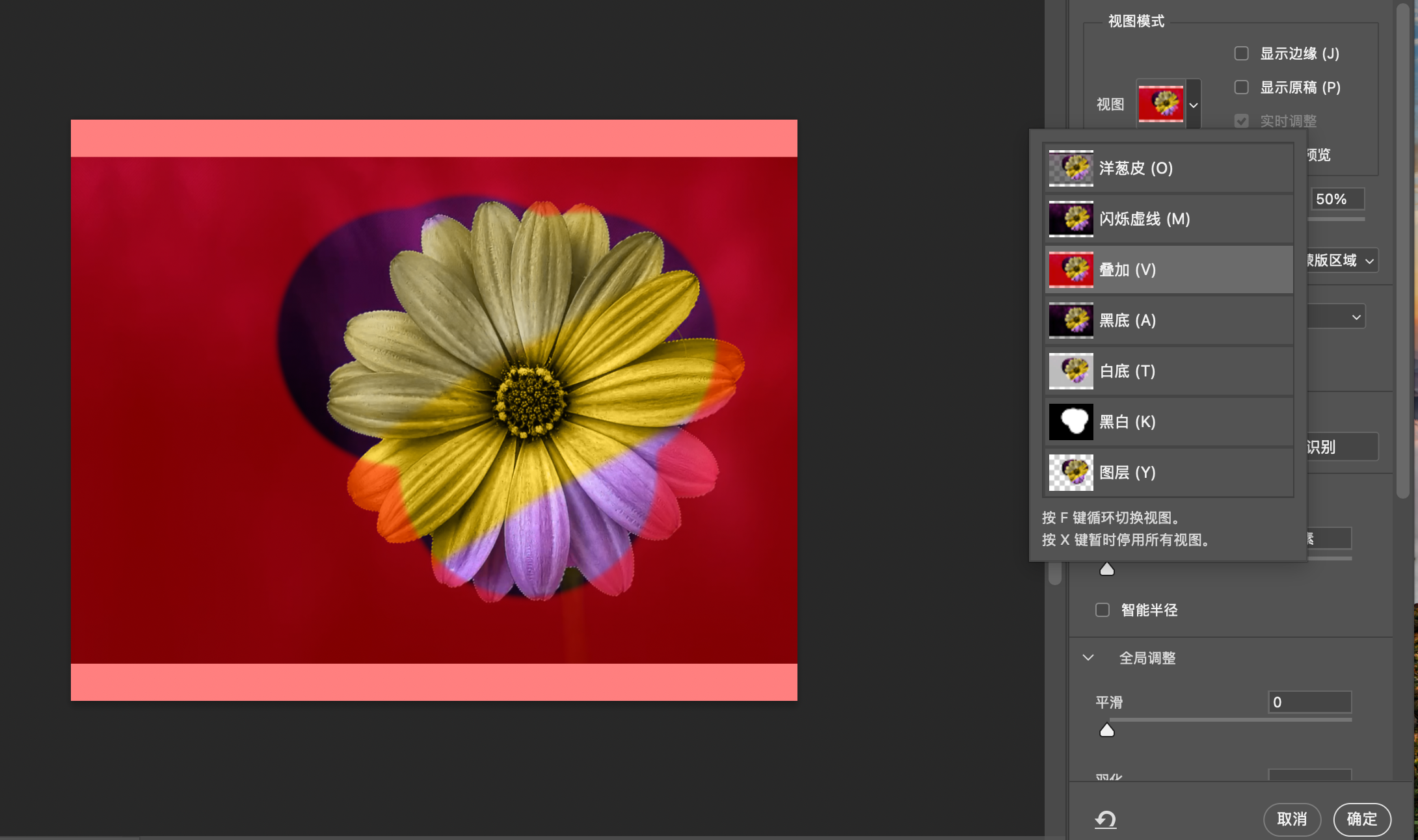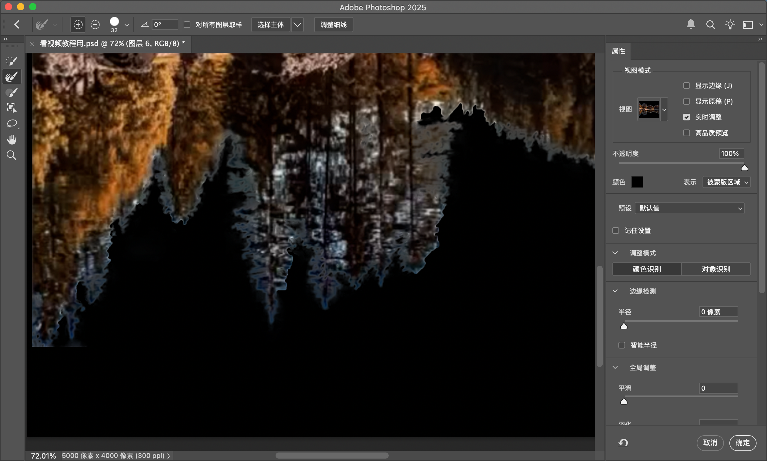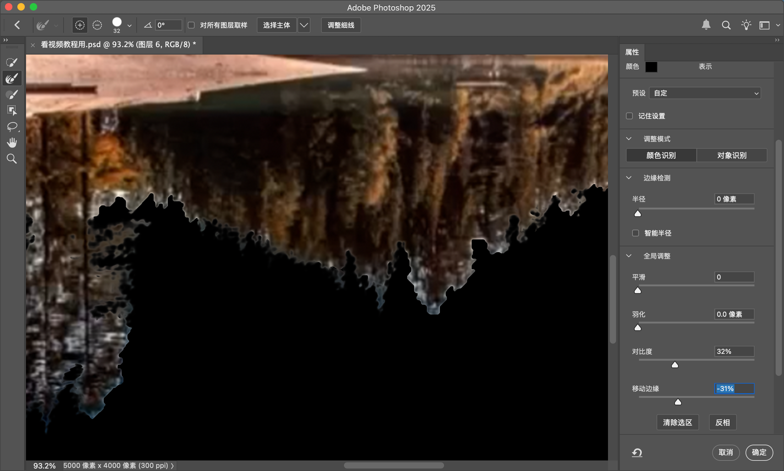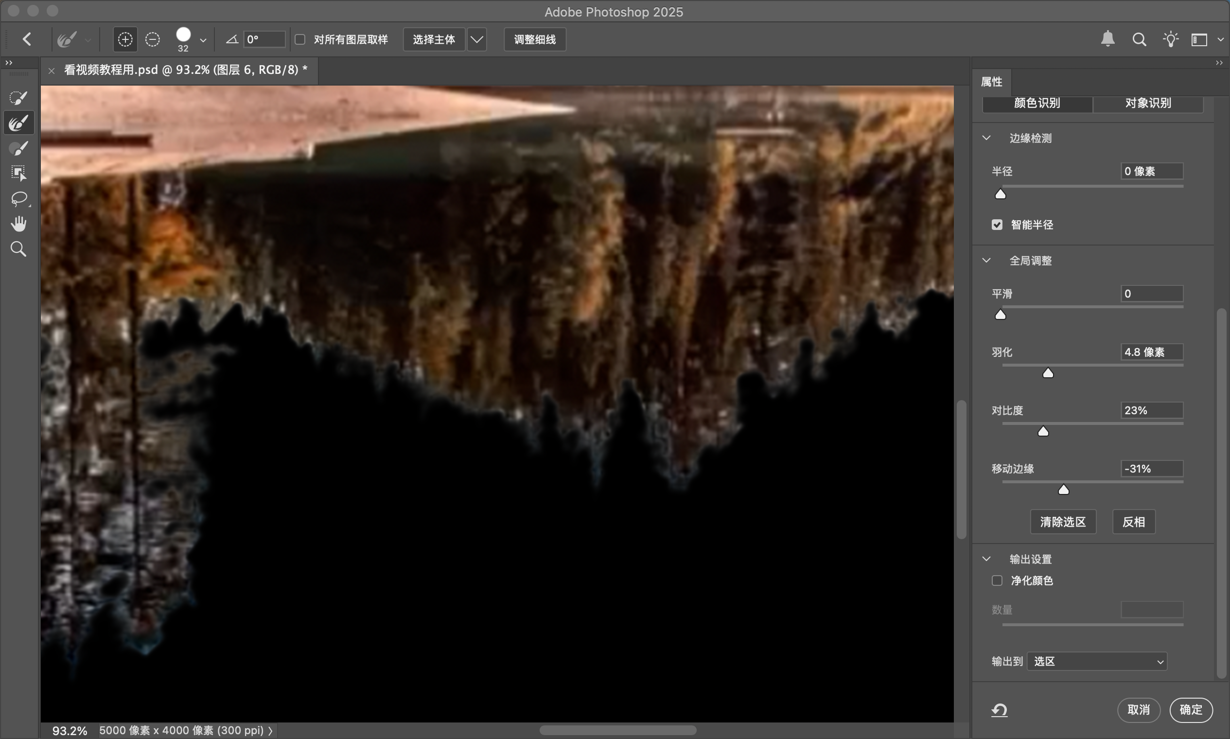 如果只是想要物体的边缘,可以用【涂抹工具】在蒙版上涂抹,将蒙版向里涂抹,推离杂色的范围