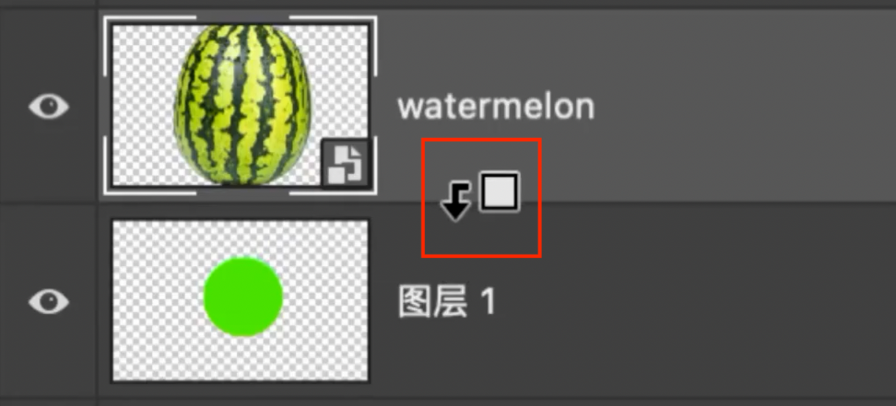 9.4.2.2 按住Alt(Opt)键点击两个图层中间的分割线也可以建立剪切蒙版 #